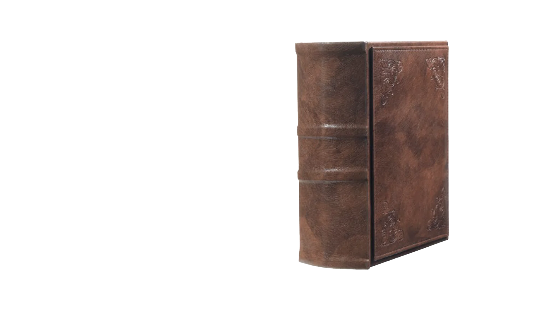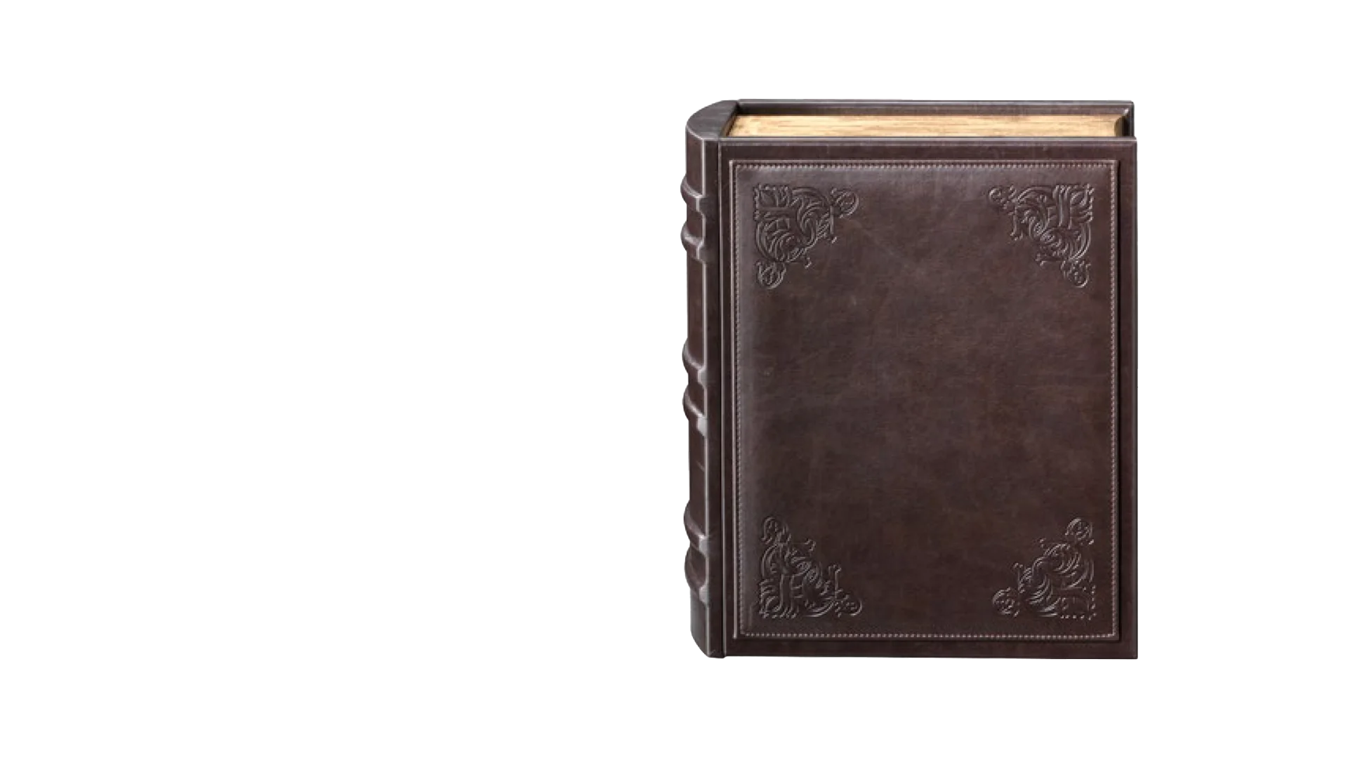 Urna in legno rivestito in pelle con fregi.