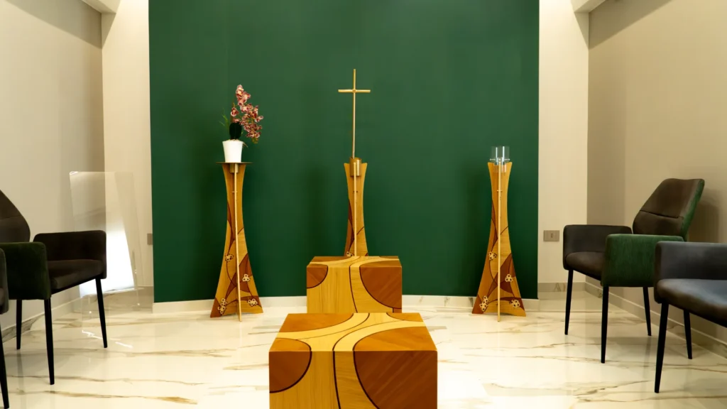 Nella Sala Giglio regna la purezza e la quiete. I suoi toni delicati e l’ambiente armonioso richiamano la grazia del fiore a cui deve il nome, simbolo di candore e serenità. È un luogo dove il dolore si fa più lieve, accompagnato da un senso di compostezza e di pace. Qui il commiato diventa un momento di intima riflessione, un dialogo silenzioso tra memoria e affetto.
